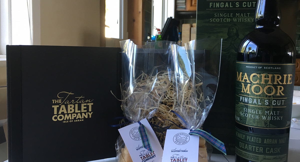 This is Arran's first Peaty Malt. A new flavour of tablet from The Lagg Distillery in Kilmory Isle of Arran. Our First Peaty flavoured Malt Whisky Tablet is available now at The Visitor shop Lagg Distillery. Fingal's Cut Malt whisky - Arran's first Peaty Malt.